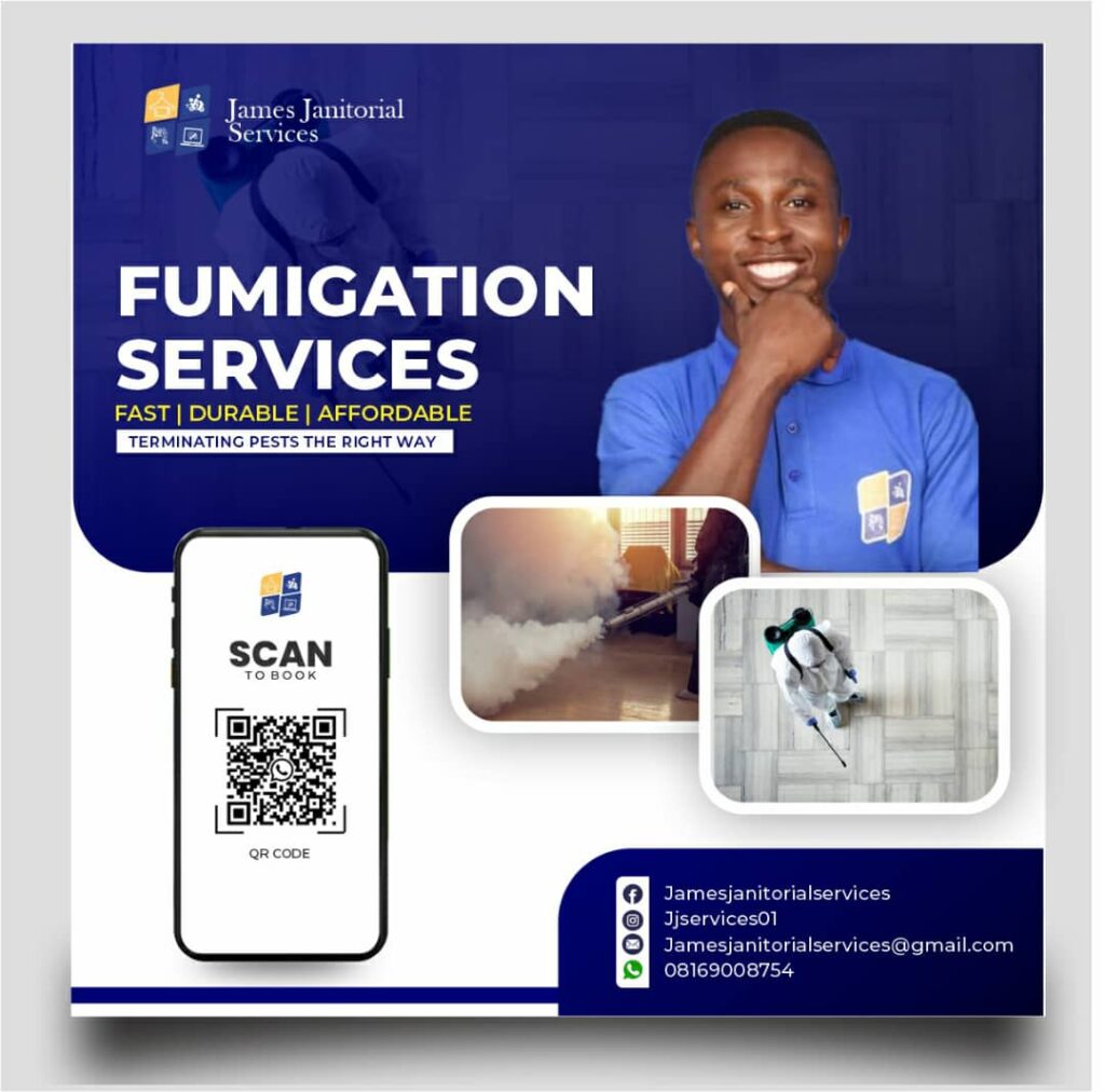 - Fumigation Services : At James Janitorial Services, we don’t just eliminate pests; we create pest-free havens. Our commitment to eco-friendly practices, efficiency, and customer satisfaction sets us apart in the field of fumigation services.